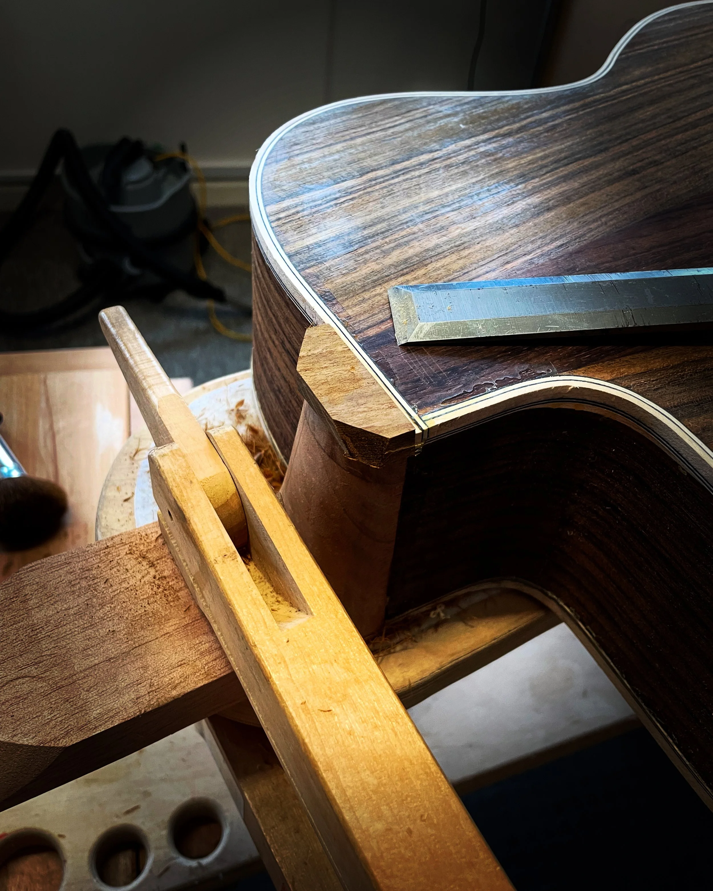 Fried began his instrument-making journey in 2011 at the Totnes School of Guitar Making, where he built his first acoustic guitar and later crafted a Gibson-style mandolin. Then after four years study graduated from the Newark School of Violin Making in 2016. Post-graduation, he balanced violin setup at Devon Strings with building a Stradivari-modeled cello. After gaining professional workshop experience, he focused on instrument making full time, starting with a commissioned baritone ukulele and then a Panormo-style double bass. Currently, he is working on a gypsy jazz guitar modeled after Mario Maccaferri but plans to return to violin family instruments.